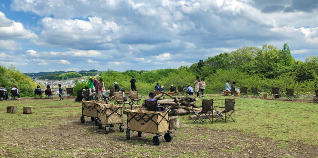 入り口から反対側に抜けると開けたエリア。時期によって、焚き火を囲むイベントがあるらしい。え、気になる。