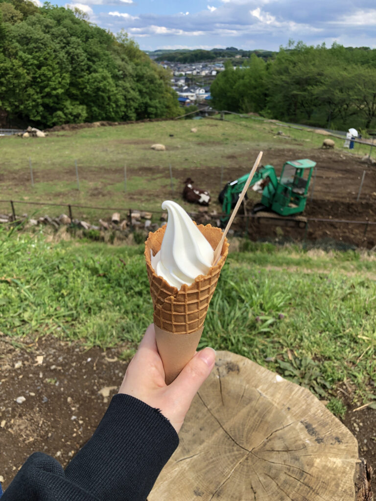 牛を眺めながらアイスやサンドイッチが食べられます。