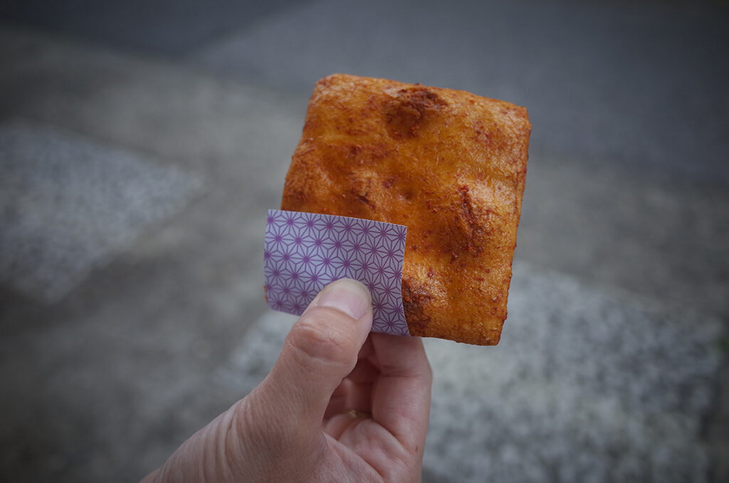 千代紙で渡してくれるのでベンチでいただきました。